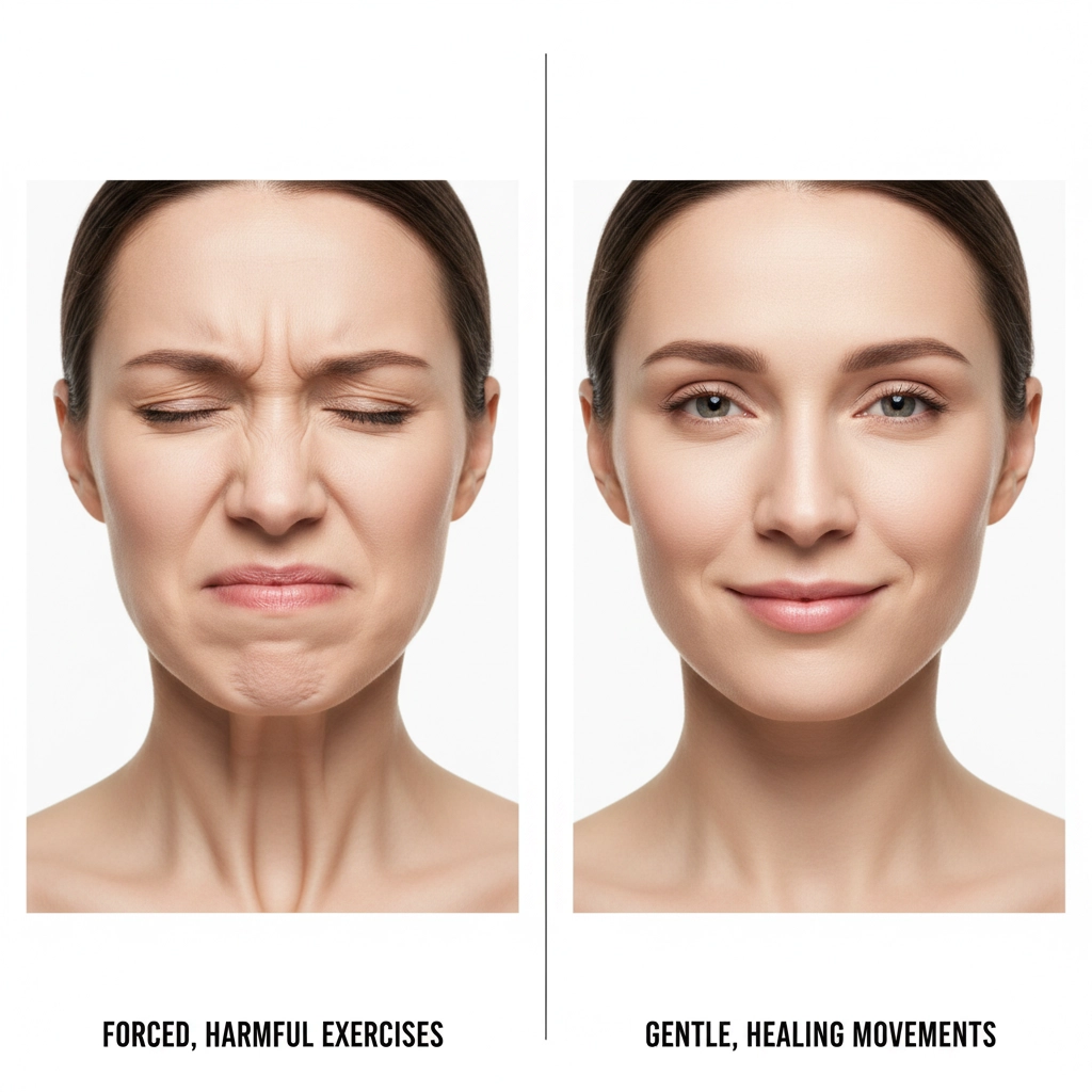The fix: Let movements develop naturally as healing progresses. Focus on gentle facial awareness rather than active force. Think of it like letting a flower bloom rather than trying to pry the petals open.